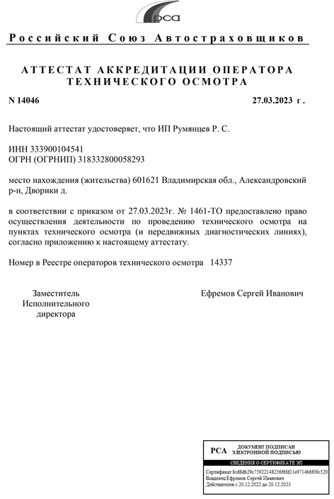 Официальный технический осмотр в пункте аккредитованном Российским Союзом Автостраховщиков (РСА)